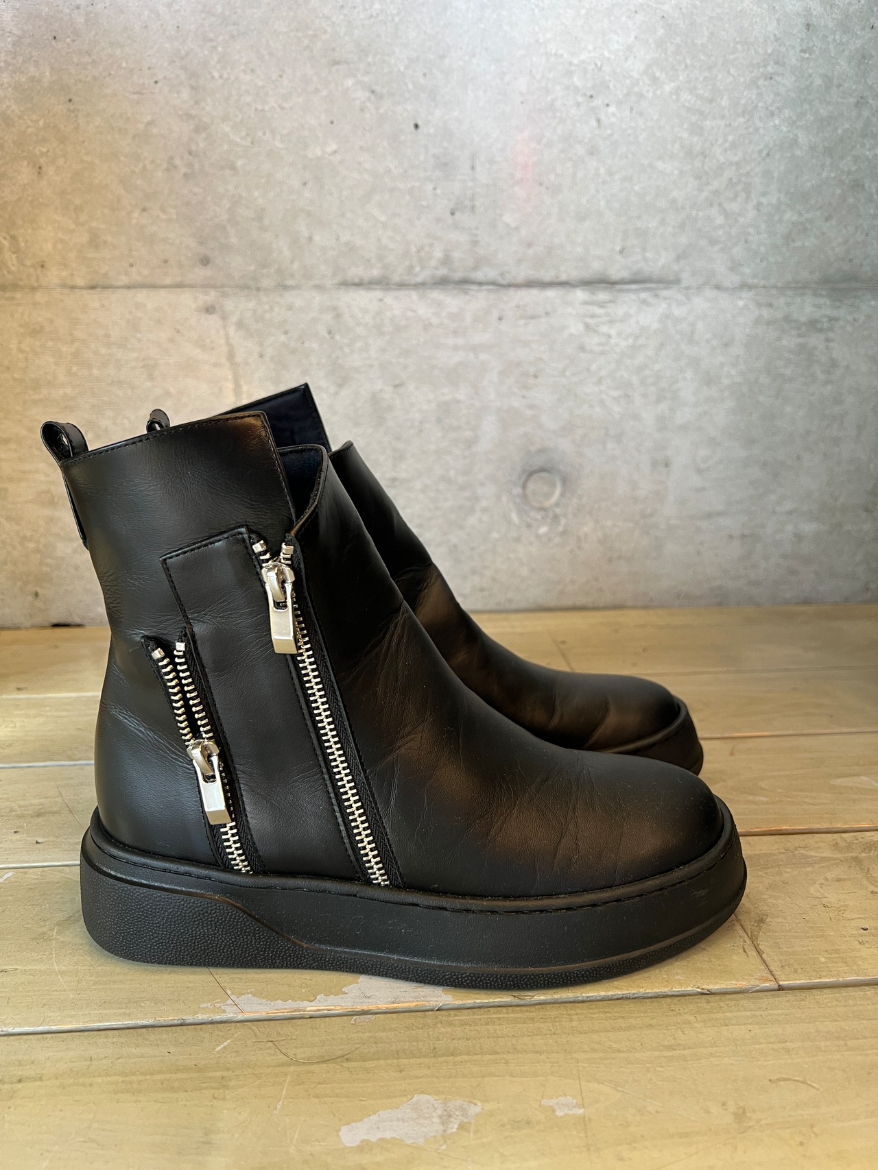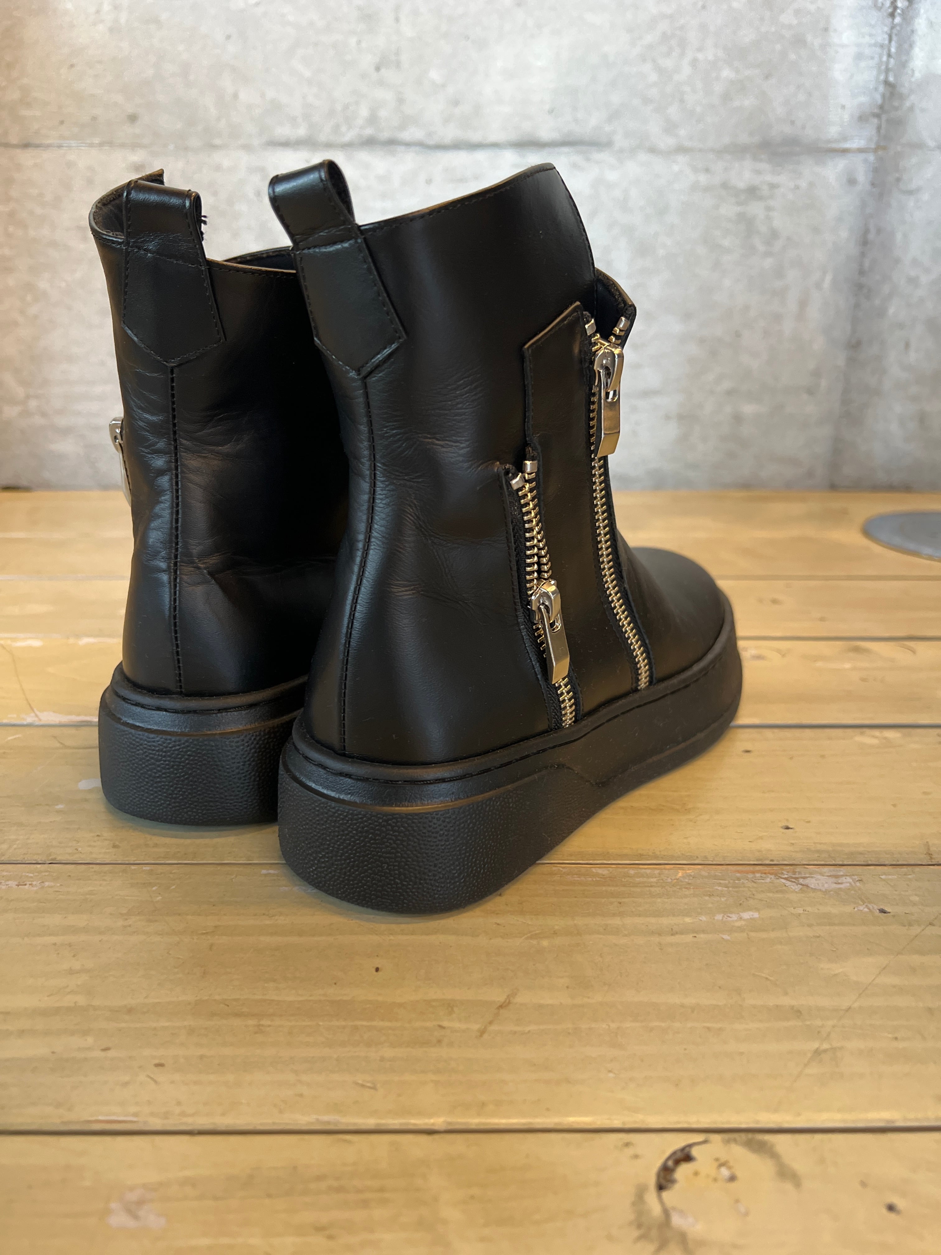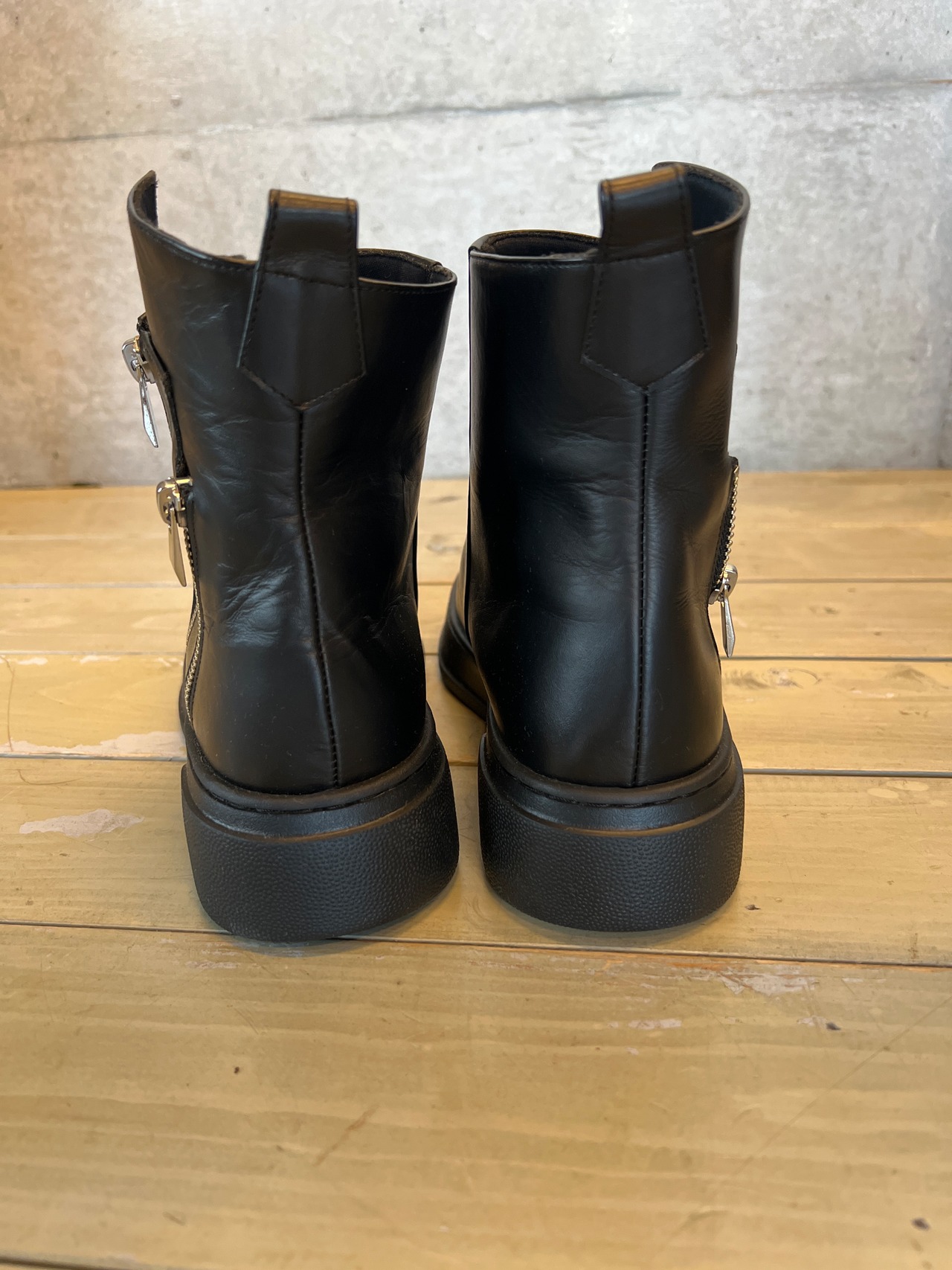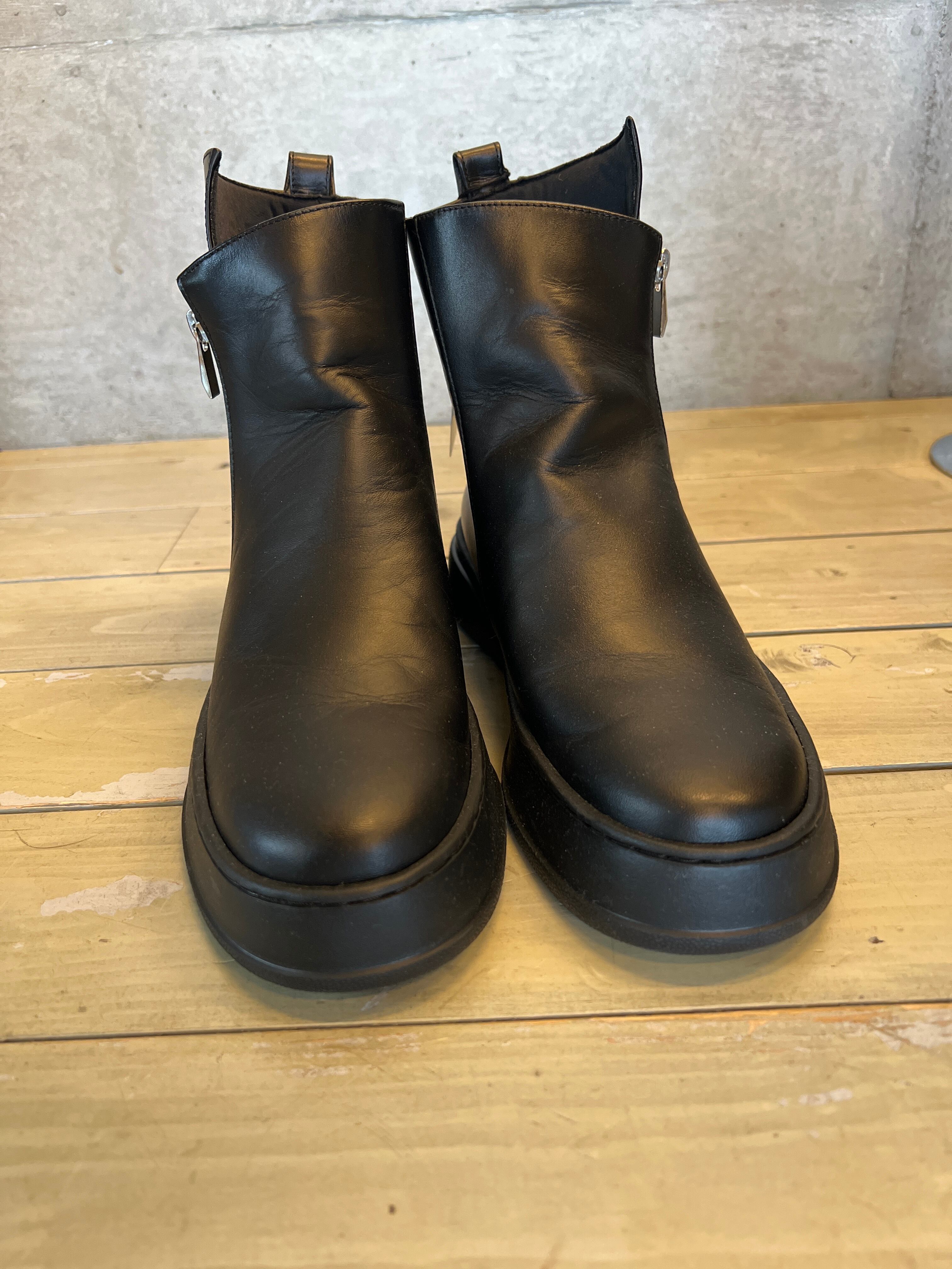 黒ジッパー付きショートブーツ